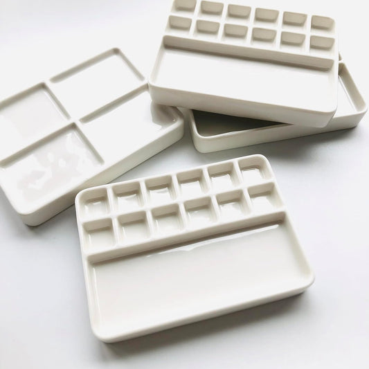 13-Well White Ceramic Paint Palette – Compact Rectangular Watercolor Mixing Tray with 12 Small Wells and 1 Large Well (11×8×1.5cm)