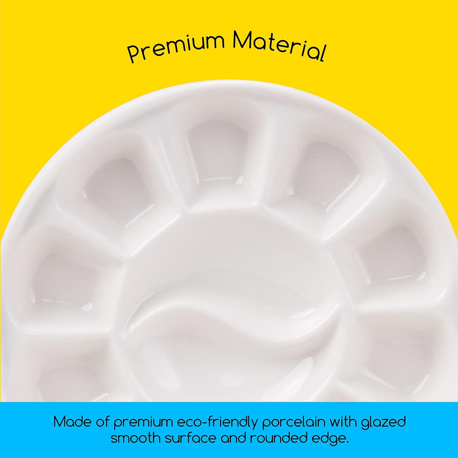 12-Well Round Porcelain Paint Palette – 7 Inches Diameter | Premium White Glazed Ceramic | Ideal for Watercolor, Acrylic, Oil, and Gouache Paints