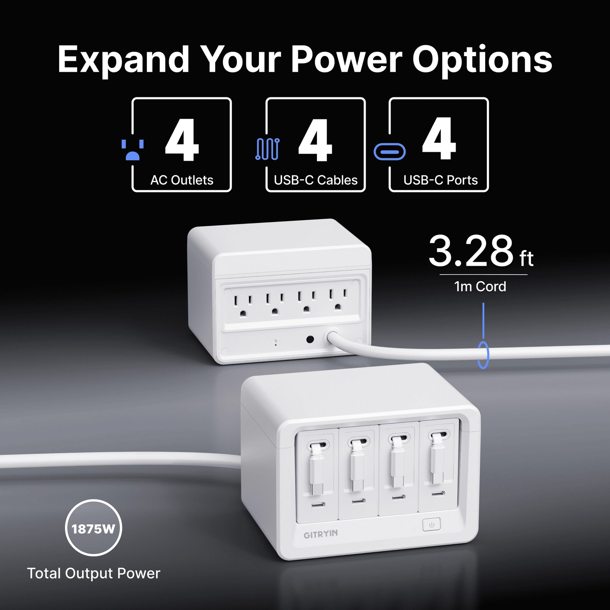 Power up to 12 devices with a unified setup that combines 8 AC outlets and 4 retractable 40W USB-C chargers—maximizing output while saving valuable desk space.